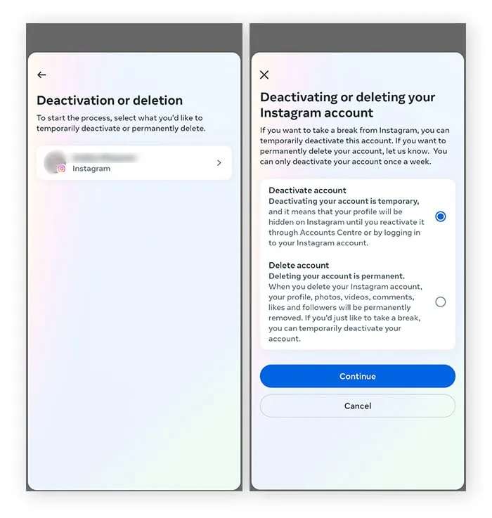 تفاوت بین حذف و غیرفعال کردن اکانت اینستاگرام چیست؟